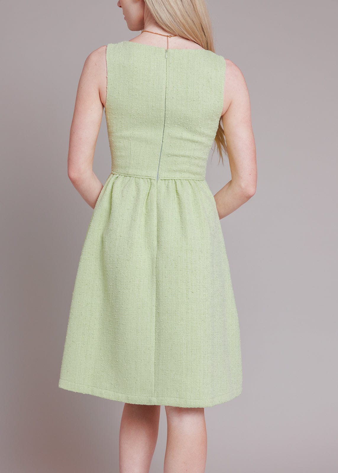 Meet the JessaKae Waldorf Dressâa clqssic silhouette inspired by polished Park Avenue style. Crafted from a soft textured fabric in a refreshing pastel green, this dress features elegant front button detailing, tailored seams, and a feminine A-line skirt that flatters every figure. Itâs the kind of piece that feels right at home in an elegant office setting or during a sophisticated lunch meeting.